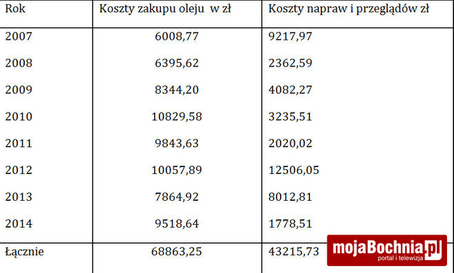 3. Koszty utrzymania pojazdu służbowego Mitshubishi w latach 2007- 2014