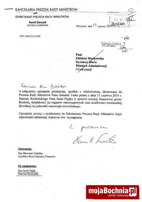 3. Pisma urzędowe w sprawie rozbioru gminy Bochnia