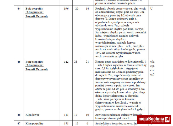 3. Pozycja 44 to Pomnik Przyrody przewidziany do wycinki [29 strona inwentaryzacji]