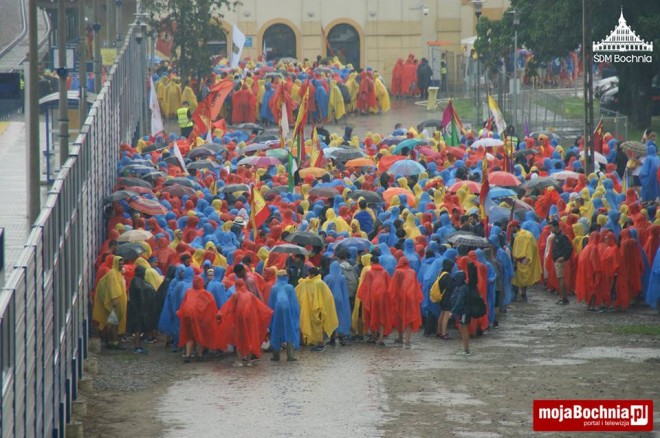 3. Pielgrzymi czekający na pociąg do Krakowa w czwartkowe popołudnie