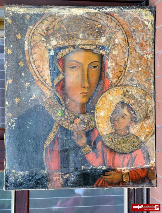 3. Cudowny obraz w trakcie odsłaniania przemalowania, widoczne promienie i fragment kotary