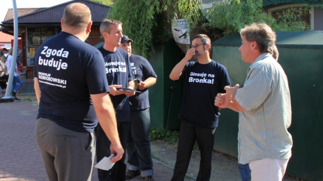 3. Podczas wizyty “bronkobusa” w Bochni 30 VI można było widzieć, jak wzburzony burmistrz Bogdan Kosturkiewicz protestuje, że który ze sztabowców obraził jego żonę