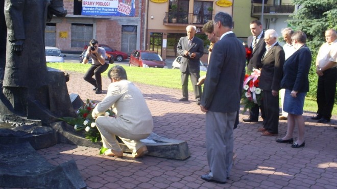 3. Burmistrz Bochni, Bogdan Kosturkiewicz składający kwiaty pod pomnikiem gen. Okulickiego