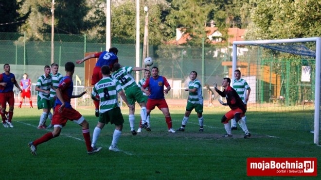 3. Marcin Motak (nr 5) strzela zwycięską bramkę dla BKS. BKS pokonał Grabovię 3-2 w meczu 3. kolejki IV ligi.