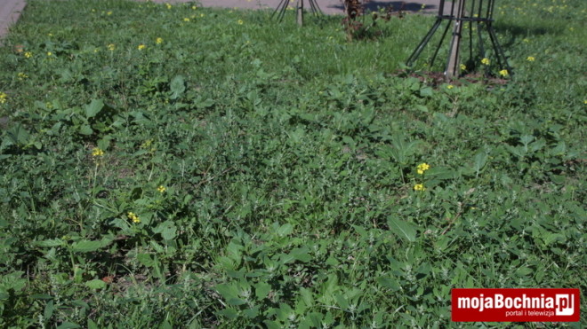 Chwasty i uschnięte drzewa na Placu Okulickiego