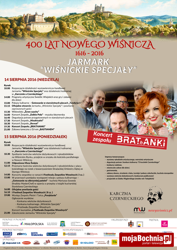W dniach 14-15 sierpnia, w ramach obchodów 400-lecia lokacji Nowego Wiśnicza odbędzie się Jarmark "Wiśnickie Specjały". Jako gwiazda, 14 sierpnia wystąpi zespół BRAThANKI.