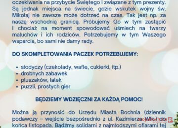 Już po raz czwarty odbędzie się w Bochni „Wigilia dla Potrzebujących”. W tym roku, 14 grudnia, Wigilia odbędzie się na terenie Plant Salinarnych, przed budynkiem Straży Miejskiej. Posiłki dla samotnych,…
