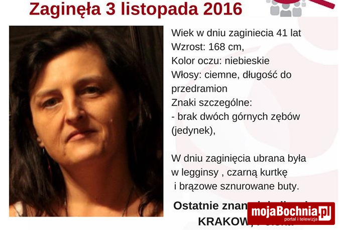 Trwają poszukiwania 41-letniej mieszkanki Stanisławic. Agnieszka Miękina po raz ostatni była widziana 3 listopada w Krakowie. Jej rodzina prosi o kontakt osoby, które mogły ją widzieć.