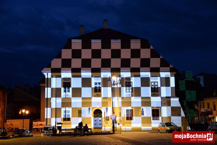 W najbliższe wakacje na płycie Rynku będzie można obejrzeć widowisko multimedialne. Wczoraj wieczorem trwały przygotowania do tego wydarzenia. Na budynku Muzeum im. Stanisława Fischera można było zaobserwować efekty świetlne.