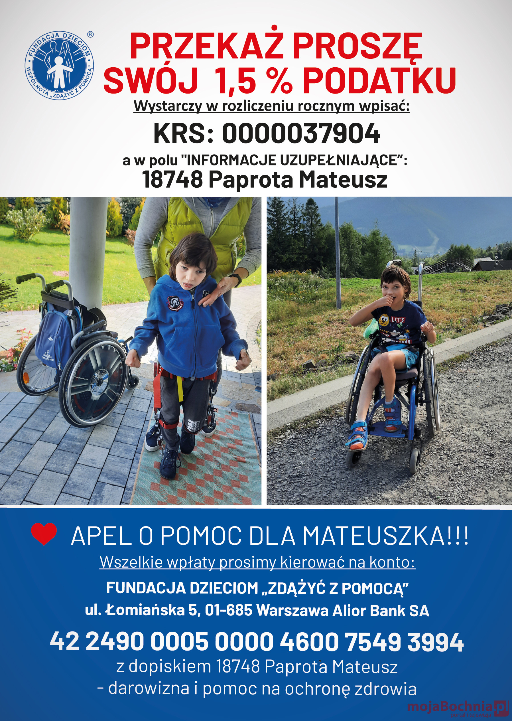 Mateuszek potrzebuje pomocy, przekaż mu wsparcie 1,5% podatku Posted by tekst sponsorowany - 24 stycznia 2024