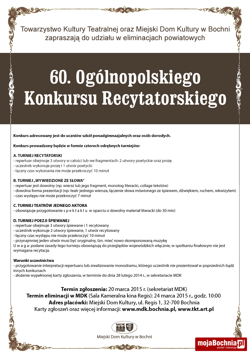 Eliminacje powiatowe do 60. Ogólnopolskiego Konkursu Recytatorskiego Posted by redakcja - 3 lutego 2015