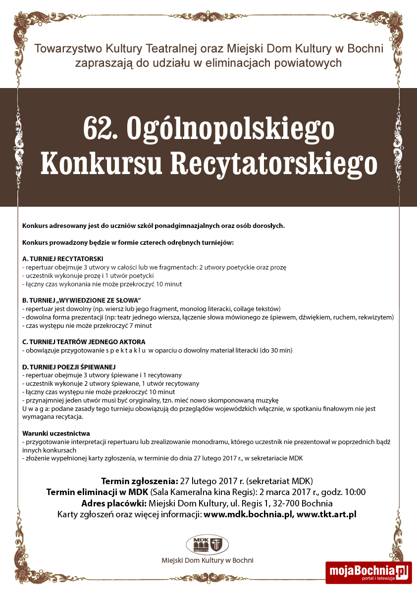 62. Ogólnopolski Konkurs Recytatorski – zapisy