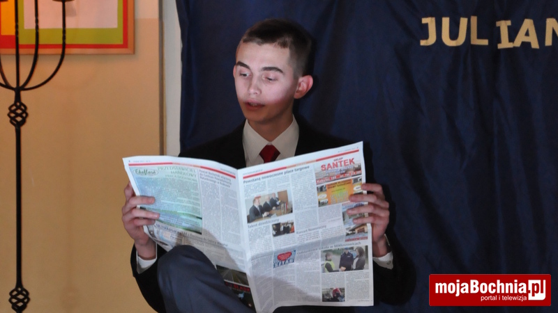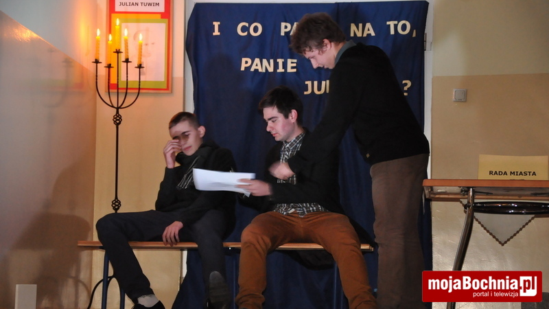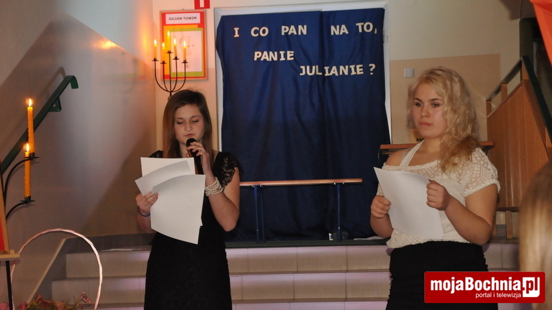 27 listopada odbył się kolejny wieczorek poetycki w ramach działalności Bocheńskiego Salonu Literackiego w II LO. Atmosfera, jaka mu towarzyszyła była ciepła i przerosła niektórych (nowicjuszy) najśmielsze oczekiwania. Przybyłych gości, rodziców, nauczycieli i uczniów gorąco przywitała jak zwykle pani dyrektor. Wieczorek był poświęcony znanemu poecie z racji ogłoszenia roku 2013 rokiem J. Tuwima. Przygoda z poezją, twórczością Tuwima miała charakter poetycko- kabaretowy. Oczywiście nie zabrakło oprawy muzycznej w postaci piosenek wykonywanych przez Olę Fischer i Kasię Mazur. Swoją grą, ruchem, mimiką , gestem czy głosem zachwycili uczniowie klasy IIa, a także nasz niezawodny kabaret, w skład którego wchodzą: Sławek Kowalski, Jakub Rola i Michał Gorczyca.