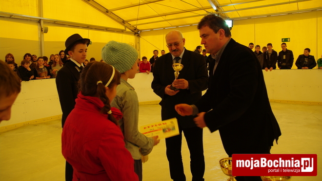 Wręczając puchary i nagrody, wójt Jerzy Lysy podkreślił, że lodowisko jest jedynym tego typu obiektem w całym regionie i spełnia bardzo ważną rolę w rozwoju fizycznym dzieci i młodzieży, a także osób dorosłych. Gospodarz gminy podziękował wszystkim nauczycielom oraz dyrektorowi Krytej Pływalni – Jarosławowi Skrzypkowi, który zimą kieruje także Sztucznym Lodowiskiem.