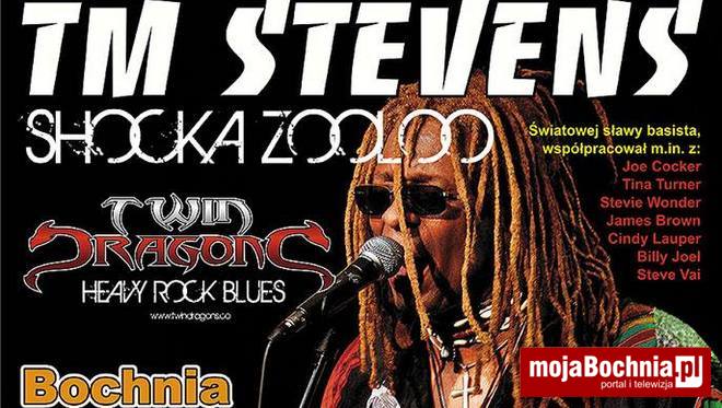 W najbliższą środę zagości w Bochni TM Stevens Shocka Zooloo. Basowy talent i umiejętności wokalne TM Stevensa są znane na całym świecie. Wyróżniający się osobowością spośród dzisiejszych basistów posiada niebywałą energię, prezencję sceniczną i wie, jak w krótkim czasie podbić publiczność.
