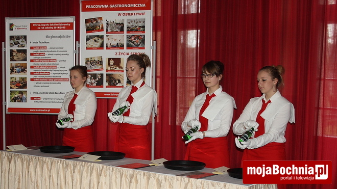 Na zakończenie wszyscy wysłuchali koncertu w wykonaniu szkolnej grupy muzycznej, obejrzeli, a nawet uczestniczyli w „Pokazie kelnerskim” oraz odebrali dyplomy za udział w zajęciach zorganizowanych w ramach Dnia Otwartego.