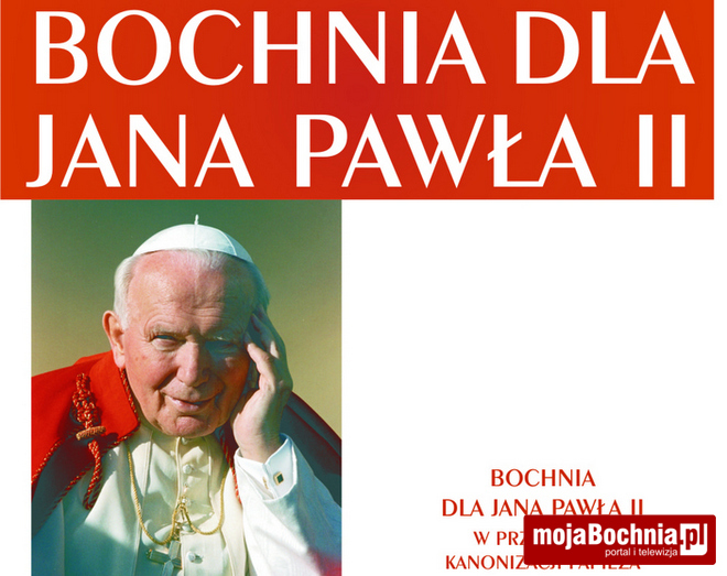 Burmistrz Miasta Bochnia, Dyrektor Państwowej Szkoły Muzycznej I Stopnia im. prof. Jerzego Żurawlewa, Dyrektor Powiatowej i Miejskiej Biblioteki Publicznej, Dyrektor Muzeum im. Stanisława Fischera zapraszają na cykl wydarzeń Bochnia dla Jana Pawła II w przeddzień kanonizacji Papieża.