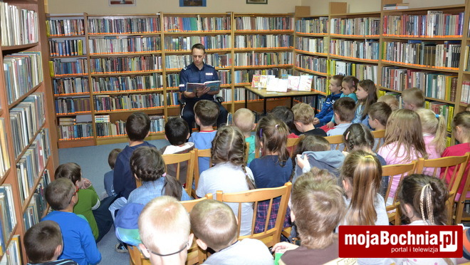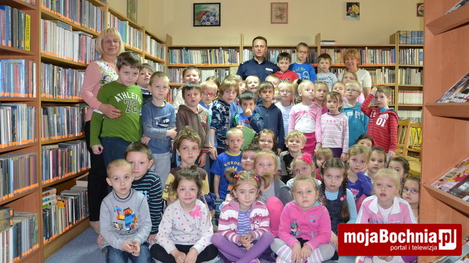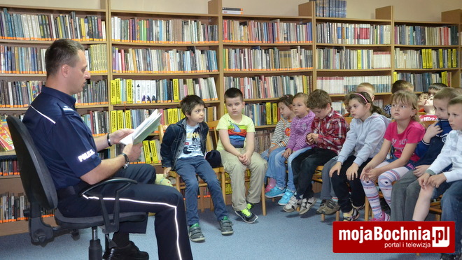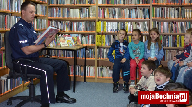 7 maja w filii nr 6 Biblioteki Publicznej w Bochni, w ramach ogólnopolskiej akcji „Cała Polska Czyta Dzieciom”, odbyło się spotkanie Komendanta Powiatowego Policji w Bochni, podinsp. Mariusza Dymury z bocheńskimi przedszkolakami.
