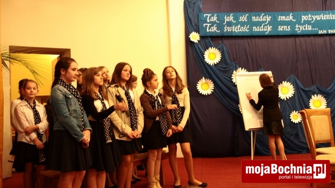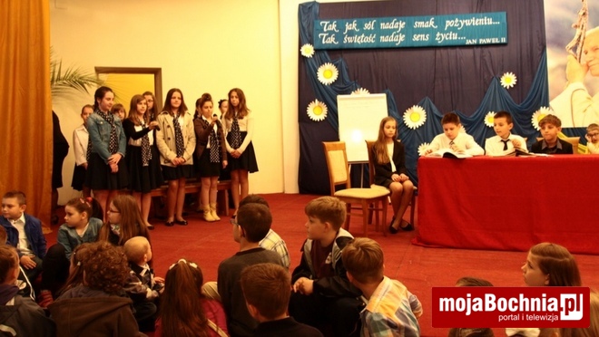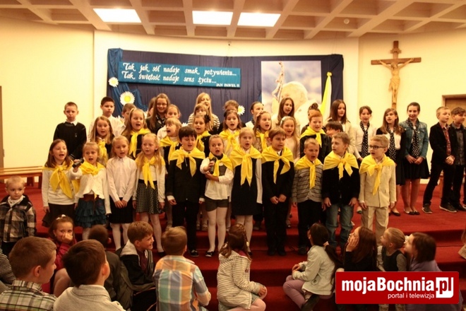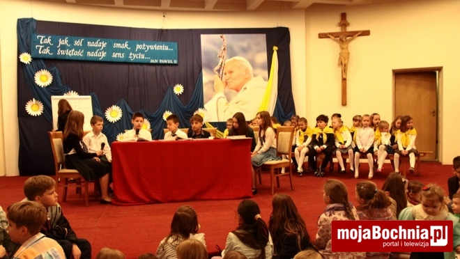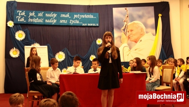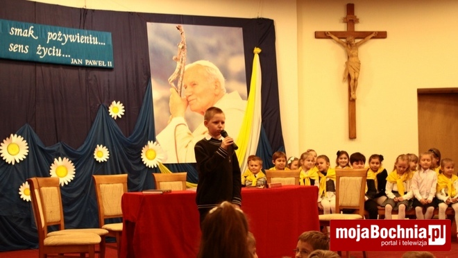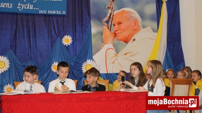 W ciekawy sposób przedstawiły sylwetkę tego niezwykłego człowieka od momentu narodzin aż do chwili przejścia do Domu Ojca. Program miał charakter refleksyjny, obok pięknych wierszy Karola Wojtyły uczniowie odegrali scenkę teatralną, odwołując się tym samym do jednej z ulubionych form ekspresji Lolka. Chór dziewcząt z klasy piątej i liczna grupa pierwszoklasistów pieśniami nawiązali do momentów zwrotnych w życiu Papieża Rodziny.
