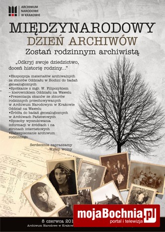 Bocheńska filia Archiwum Narodowego zaprasza na Międzynarodowy Dzień Archiwów. W programie m.in. ekspozycja, spotkanie z szefem krakowskiego oddziału placówki, a także przewodnik po zbiorach elektronicznych.