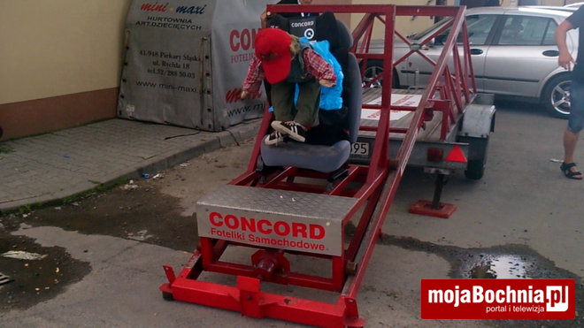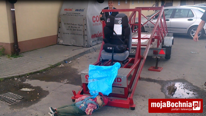 Firma Kubuś z Bochni zorganizowała pouczającą symulację. W piątek i sobotę przed budynkiem firmy przy ul. Partyzantów 2 można przekonać się, co dzieje się z dzieckiem zapiętym w pasy fotelika oraz bez niego w czasie czołowego zderzenia.