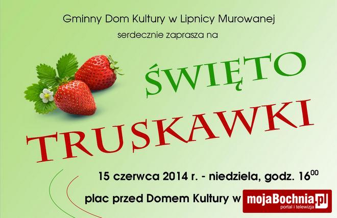 Gminny Dom Kultury w Lipnicy Murowanej serdecznie zaprasza na Święto Truskawki, które odbędzie się w niedzielę 15 czerwca od godziny 16:00 na placu przed Domem Kultury w Rajbrocie.