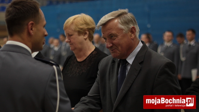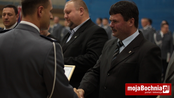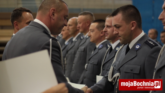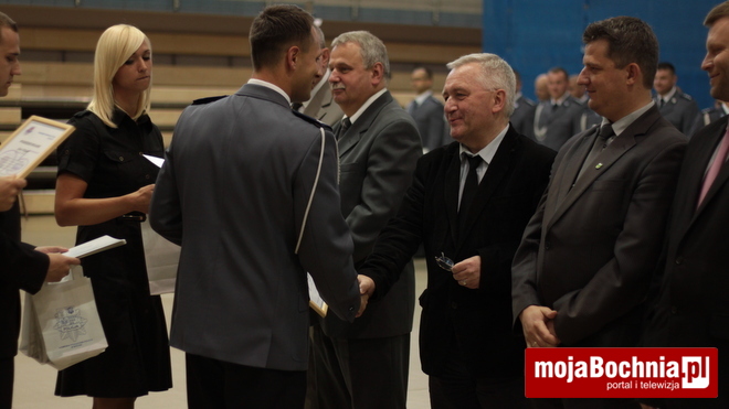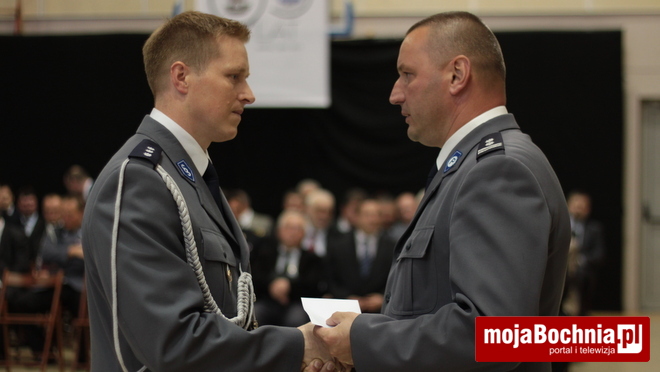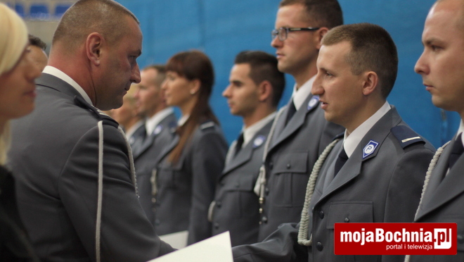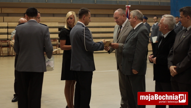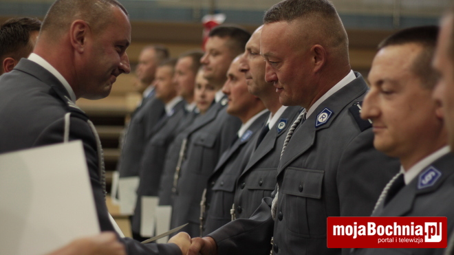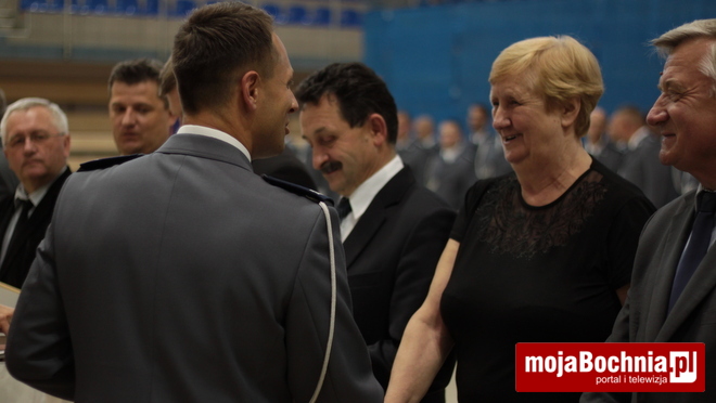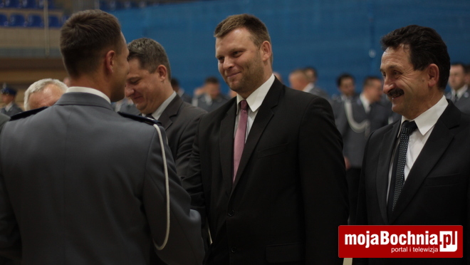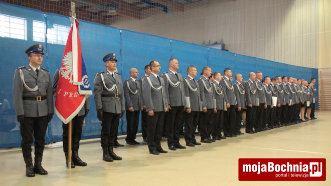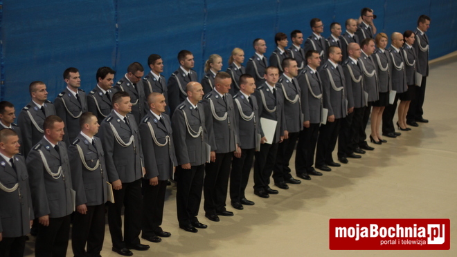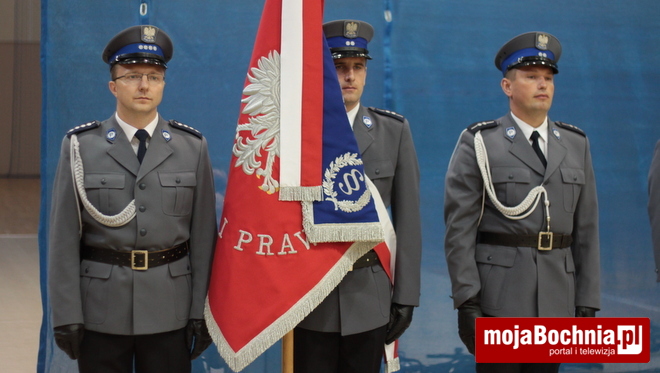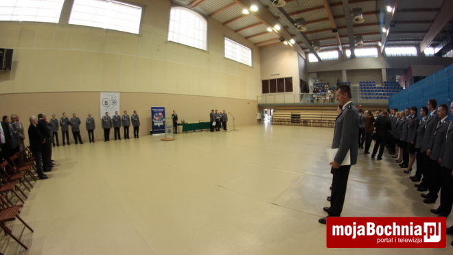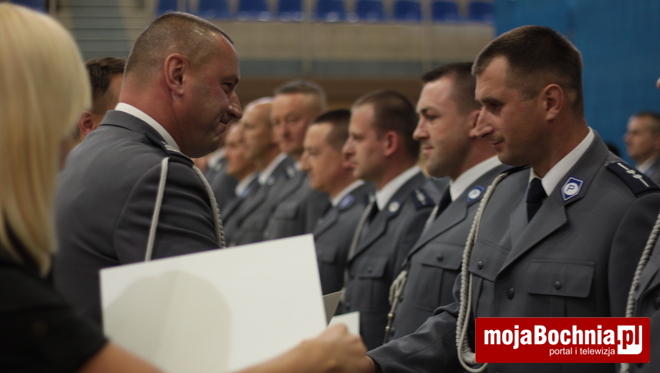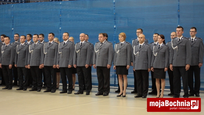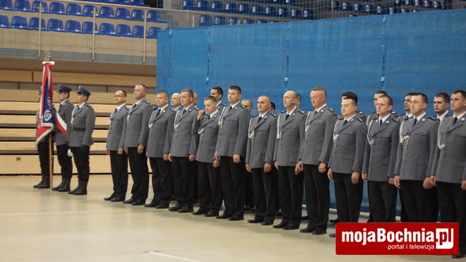 Druga część uroczystości odbyła się w Hali Widowiskowo-Sportowej. Po meldunku złożonym zastępcy Komendanta Wojewódzkiego Policji w Krakowie, mł. insp. Pawłowi Dzierżakowi, odegrano Hymn Rzeczypospolitej Polskiej, po czym nastąpiło m.in. wręczenie funkcjonariuszom aktów mianowania na wyższe stopnie.