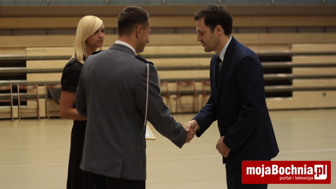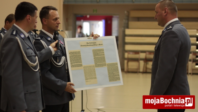 Komendant Powiatowy Policji w Bochni, podinsp. Mariusz Dymura podziękował Zastępcy Komendanta Wojewódzkiego Policji w Krakowie, mł. insp. Pawłowi Dzierżakowi za dotychczasową współpracę i nieustające wsparcie.