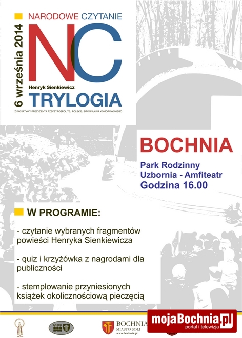 Po raz drugi Bochnia włącza się w ogólnopolską akcję „Narodowe czytanie”, zainicjowaną przez Prezydenta RP Bronisława Komorowskiego, w tym roku poświęconą „Trylogii” Henryka Sienkiewicza.