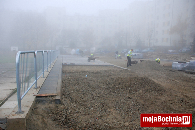 Trwają również prace związane z budową parkingu przy osiedlu Niepodległości. Inwestycja obejmuje budowę 24 miejsc postojowych dla samochodów osobowych, w tym jedno miejsce dla osób niepełnosprawnych.