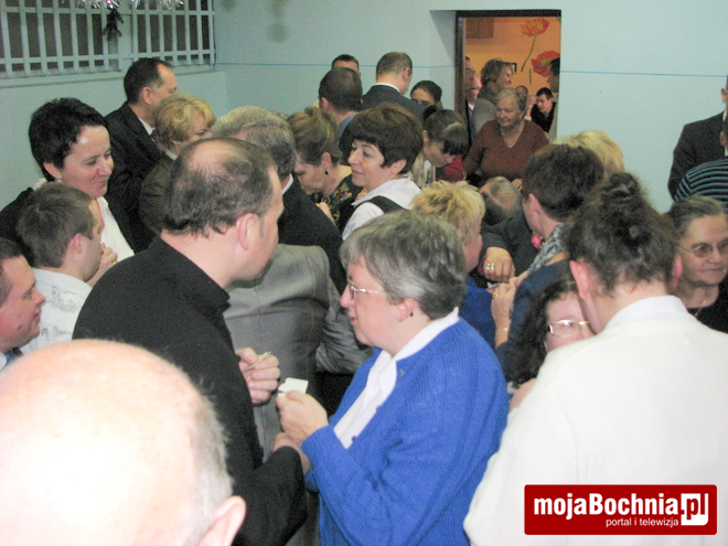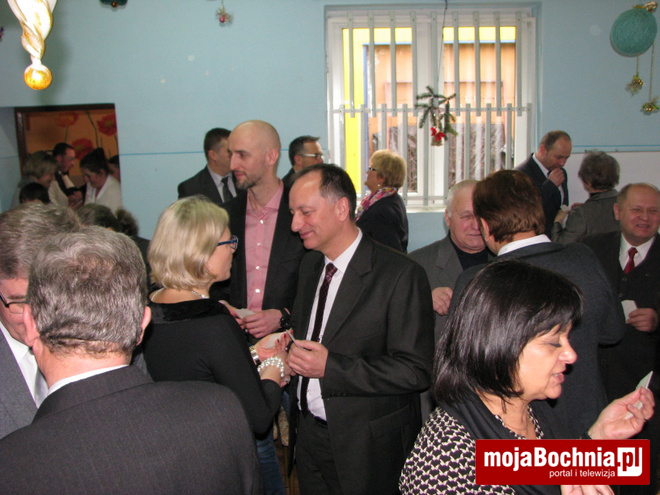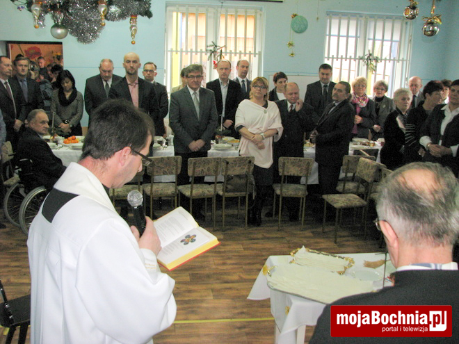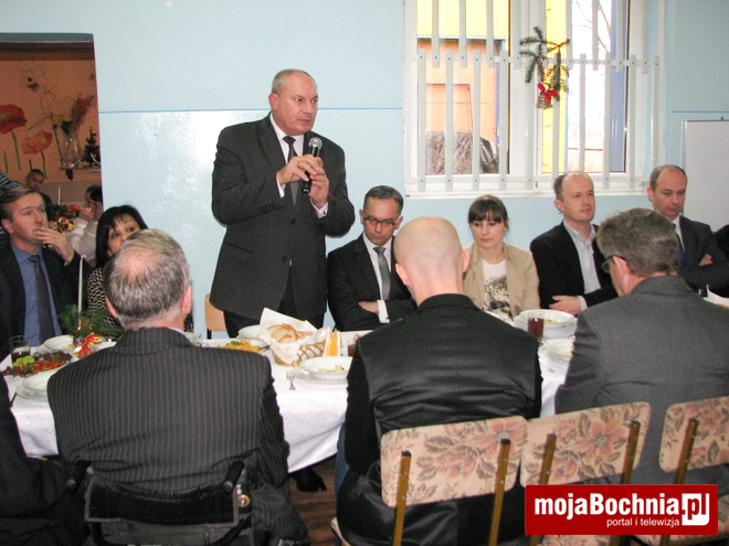 Tradycyjnie spotkanie rozpoczęto od występu podopiecznych placówki, którzy przygotowali dla przybyłych gości piękne wiersze i kolędy wprowadzając wszystkich w klimat zbliżających się świąt. Następnie kierownik placówki Edward Firek przywitał licznie przybyłych gości i podziękował za wszystkie gesty dobroci i serdeczności, jakie kierowane były w minionym roku i są kierowane nadal pod adresem podopiecznych placówki. Szczególnie uczestnicy placówki są wdzięczni za przekazany w mijającym roku przez Starostwo Powiatowe samochód dla WTZ oraz liczny udział w aukcji prac, dzięki czemu mogli skorzystać z wypoczynku nad morzem. Słowa wielkich podziękowań dla sponsorów, darczyńców i osób prowadzących placówkę popłynęły z ust burmistrza Miasta Bochnia pana Stefana Kolawińskiego i dyrektor PCPR Elżbiety Paczyńskiej.