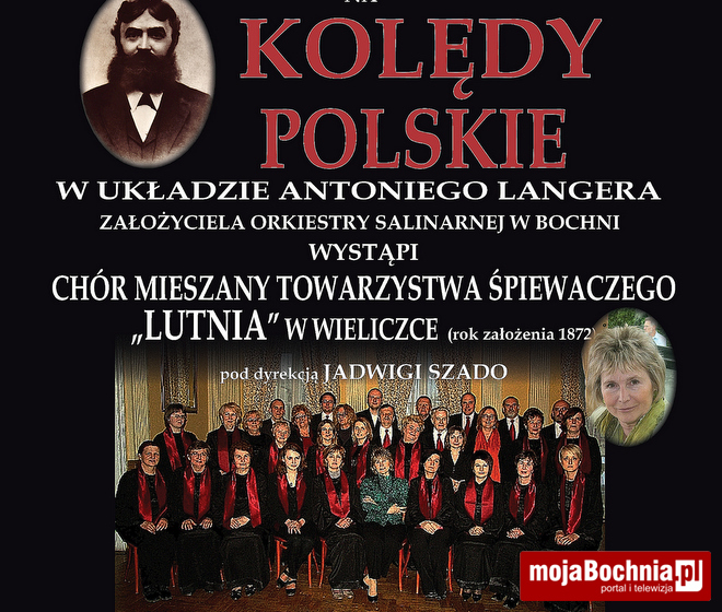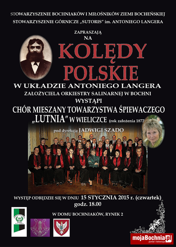 Stowarzyszenie Bochniaków oraz Stowarzyszenie Górnicze „SUTORIS” im. A. Langera zapraszają na koncert Chóru Mieszanego Towarzystwa Śpiewaczego „LUTNIA” z Wieliczki pod dyrekcją Jadwigi Szado.