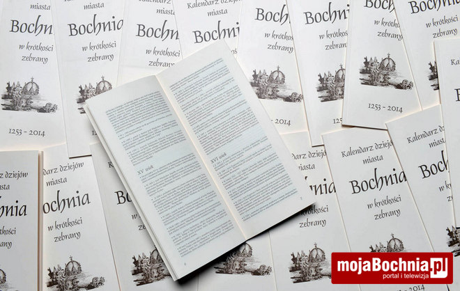 „Kalendarz dziejów miasta Bochnia w krótkości zebrany 1253-2014” autorstwa Jana Flaszy to debiut wydawniczy Miejskiego Domu Kultury na rynku książek. Wydawnictwo stanowiące kompendium wiedzy o Bochni ma charakter druku bibliofilskiego o bardzo niskim nakładzie.