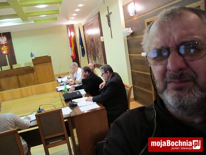 Gospodarz Bochni uspokoił: Chciałbym poinformować, że kamery w pokoju dla radnych nie ma, chciałbym państwa uspokoić. Ale wszyscy spotykamy się z jedną osobą, która tutaj permanentnie dokonuje zdjęć. Również w tym aparacie posiada kamerę, która nagrywa i później udostępnia nagrania na YouTube. Drodzy państwo, można zareagować z powództwa cywilnego, bo państwo musicie wyrazić zgodę na udostępnienie swojego wizerunku. Taką informację uzyskałem, więc tylko powództwo cywilne, nie z urzędu, może sprawę załatwić. Natomiast apelowałbym o państwa czujność, uwagę, w tym kierunku, żeby takie zdarzenia, jeżeli dla państwa są one niedogodne, eliminować we własnym zakresie. Można w każdej sytuacji kogoś wyprosić z pokoju, dlatego że przecież rozmowy w pokoju radnych odbywają się często z koniecznością zachowania daleko idącej poufności.