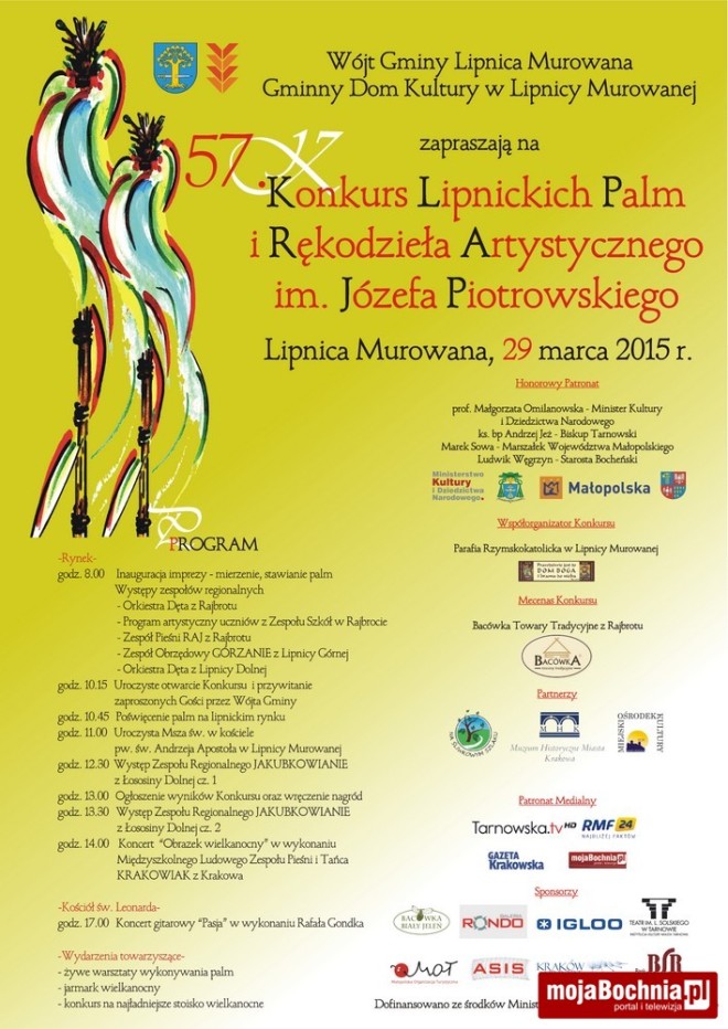 Niedziela Palmowa w Lipnicy Murowanej jest niezwykle emocjonującym wydarzeniem, które co roku przeżywa się na nowo. Już po raz 57 odbędzie się tam Konkurs Lipnickich Palm i Rękodzieła Artystycznego im. Józefa Piotrowskiego.