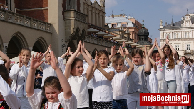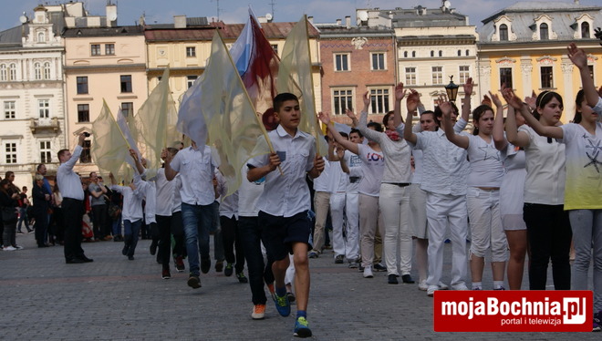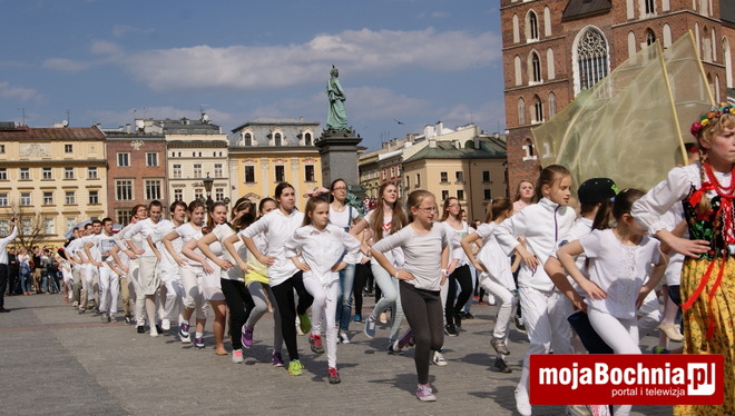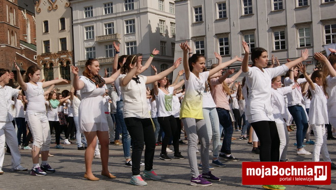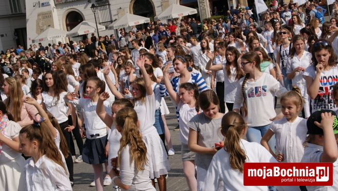 Podobnie jak w zeszłym roku, parking przy kościele św. Anny zamienił się w wielką scenę. Jako pierwsi, taniec uwielbienia pod flagą papieską do utworu „Hallelujah” Leonarda Cohena wykonali uczniowie kl. 3. Tuż po nich na płytę parkingu wybiegło 50 ubranych na biało uczniów naszej szkoły i zabrzmiała pieśń o Wielkiej Nocy, czyli „(…) najwspanialszym dniu w historii świata, kiedy Życie zatriumfowało nad śmiercią (…)”. Dzieci i młodzież odtańczyli pełen radości Taniec Wielkanocny do utworu „Uratowani” zespołu Trzecia Godzina Dnia (polskojęzycznej wersji pieśni „Resurrection Sunday Dance”).