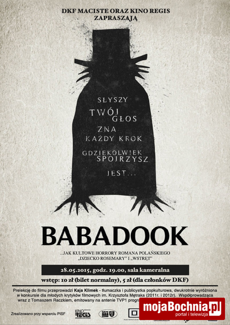 The Babadook przypomina koszmarny sen, z którego chcielibyśmy się wybudzić, ale jednocześnie fascynuje nas i pieści każdy przesiąknięty strachem zmysł. Opowieść wdziera się w najmroczniejsze zakamarki naszego umysłu. Podczas seansu nagle wraca strach odczuwany w dzieciństwie przed potworami z szafy, czy tymi spod łóżka. Jennifer Kent gra z nami w grę, w której to ona rozdaje karty i nieraz nas zaskakuje asami wyrzucanymi z rękawa. Jest to magiczna sztuczka najwyższej klasy i pozycja obowiązkowa dla fanów grozy. Film został porównany przez magazyn „Variety” do trzech filmów Romana Polańskiego: Wstrętu (1965), Lokatora (1976) oraz Dziecka Rosemary (1968), oczywiście nie bez przyczyny. Pozostawi po sobie dużo niepokoju, a kiedy usłyszycie nawet najdrobniejszy zgrzyt zastanowicie się, czy to nie Babadook. Miłych snów! (Rafał Christ, „NoirCafe”)