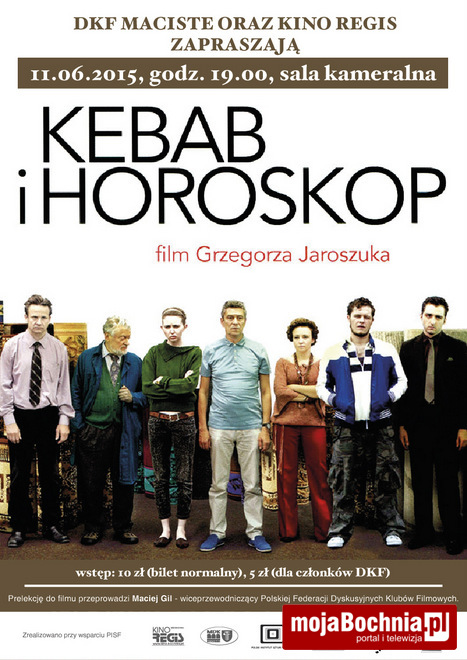 Kino Regis zaprasza na ostatnie przed wakacjami spotkanie Dyskusyjnego Klubu Filmowego. 11 czerwca /czwartek/ o godz. 19.00 obejrzymy polski komedio-dramat „Kebab i Horoskop”. Prelekcję przed spotkaniem wygłosi wiceprzewodnicy Polskiej Federacji Dyskusyjnych Klubów Filmowych – Maciej Gil.
