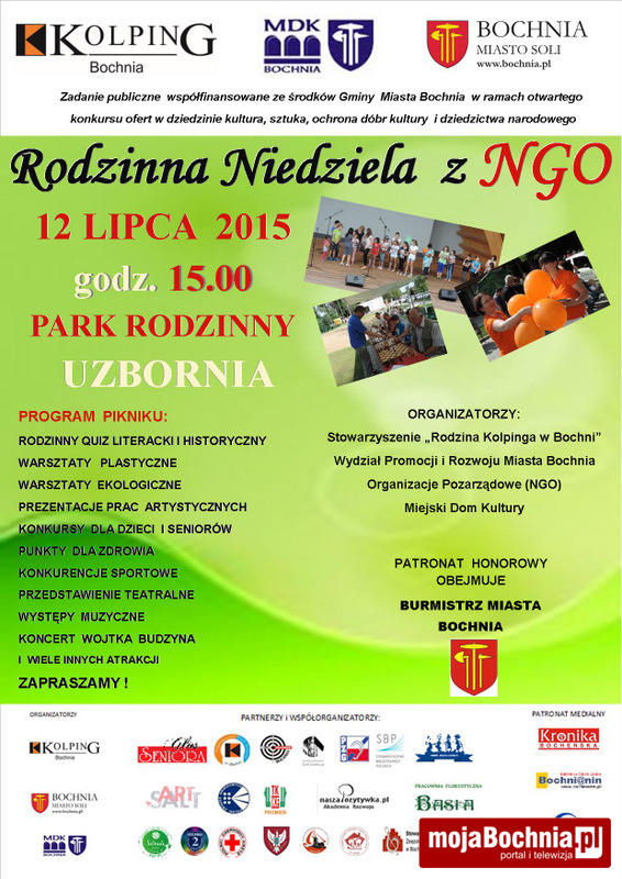 W niedzielę 12 lipca w Parku Rodzinnym Uzbornia, odbędzie się piknik pn. „Rodzinna Niedziela z NGO”, organizowany przez Stowarzyszenie „Rodzina Kolpinga w Bochni” wraz z bocheńskimi organizacjami pozarządowymi (NGO) we współpracy z Miejskim Domem Kultury oraz Wydziałem Promocji i Rozwoju Miasta.