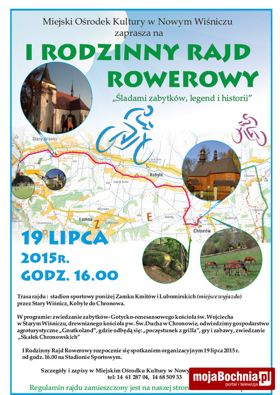 Miejski Ośrodek Kultury w Nowym Wiśniczu w ramach wakacyjnych zajęć ofert zaprasza na „I Rodzinny Rajd Rowerowy” pn. „Śladami zabytków, legend i historii”.