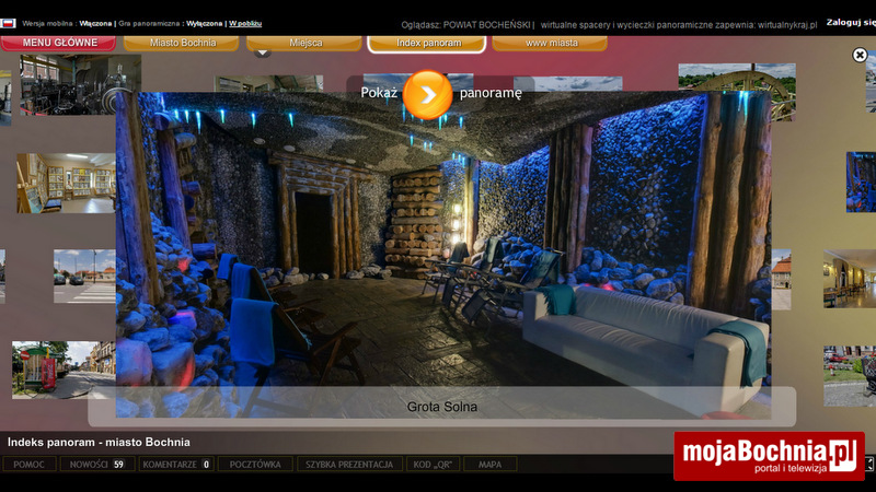 Nie wychodząc z domu mamy szansę przenieść się do najciekawszych miejsc oraz zabytków, znajdujących się w poszczególnych miejscowościach. Wirtualny spacer połączony jest z mapą Google, na której znajdują się współrzędne geograficzne, jest również możliwość sprawdzenia ciekawych miejsc w pobliżu jak również wysłania pocztówki. Znajdziemy również indeks panoram z opisem i zakładkę z filmami. Wirtualny spacer został połączony z aplikacją Google – Street View. Do każdego wirtualnego spaceru został wbudowany kod QR, który można zeskanować telefonem i otrzymać link do danego miejsca – tłumaczy Sabina Kierepka z bocheńskiego Starostwa.