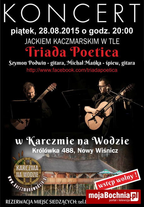 Duet Triada Poetica zaprezentuje dzisiaj kompozycje Jacka Kaczmarskiego. Koncert odbędzie się w Karczmie na Wodzie w Królówce, wstęp jest wolny.