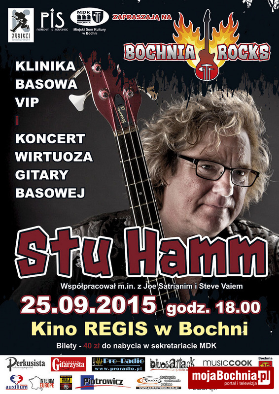 W Bochni mogliśmy posłuchać mistrzowskiej gry Stu Hamma w marcu tego roku, kiedy uczestniczył w trasie koncertowej Jennifer Batten. Już 25 września w sali kameralnej MDK przeprowadzi natomiast klinikę gitarową. Hamm jest nie tylko wybitnym basistą, ale i uznanym pedagogiem, warto więc skorzystać z jego wiedzy, podpatrzyć umiejętności a przede wszystkim uważnie posłuchać rad, a później zobaczyć i posłuchać wirtuozerskiej gry podczas koncertu.