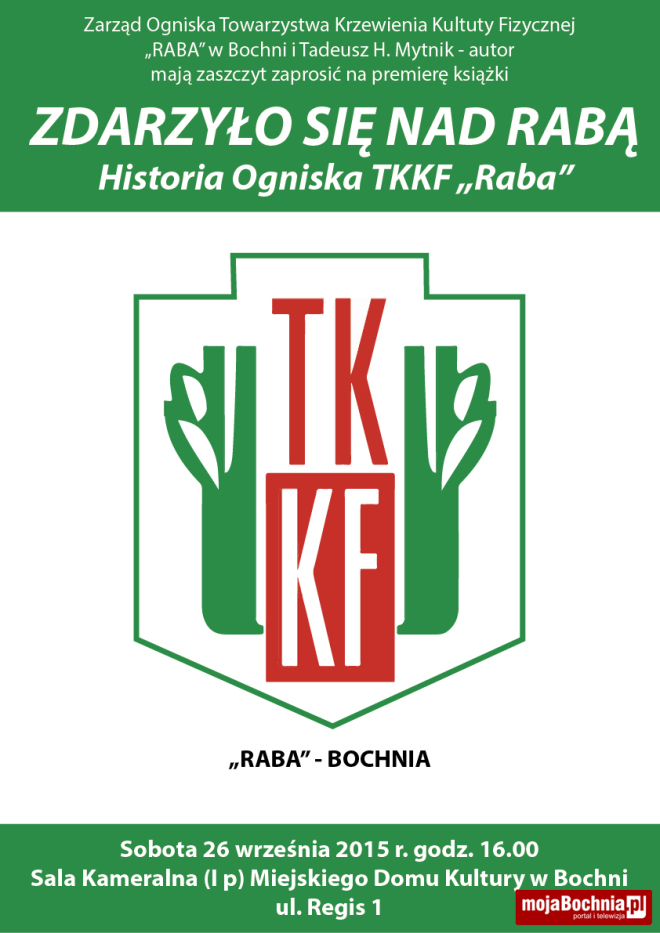W sobotę 26 września o godzinie 16.00 w sali kameralnej Miejskiego Domu Kultury odbędzie się prezentacja książki autorstwa Tadeusza Mytnika pt.: „Zdarzyło się nad Rabą. Historia Ogniska TKKF RABA”.