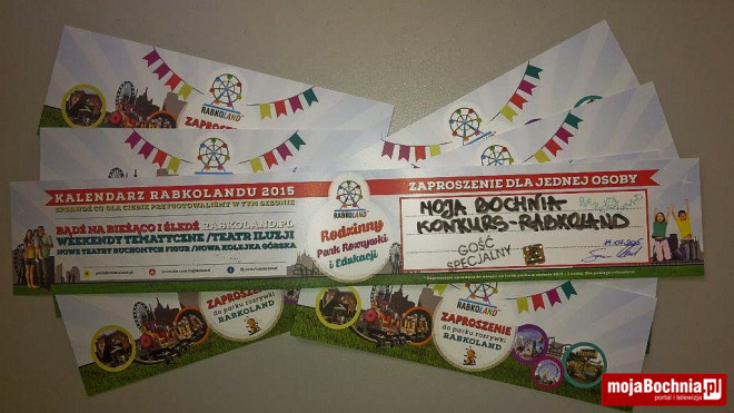 Dla czytelników mojaBochnia.pl mamy dla Was dziesięć pojedynczych zaproszeń do parku rozrywki Rabkoland w Rabce. Aby stać się szczęśliwym posiadaczem jednego z nich należy wejść na nasz profil na Facebooku.
