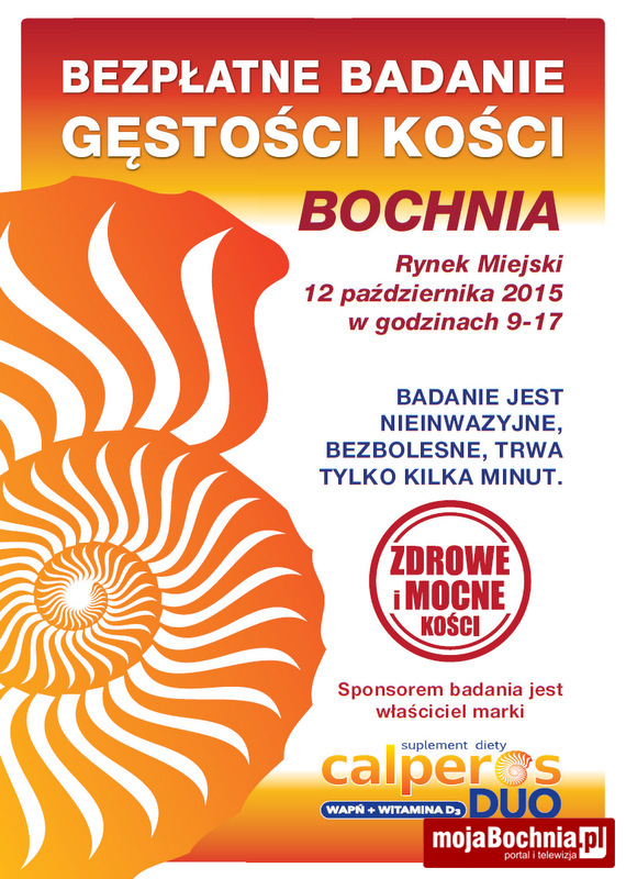 W poniedziałek 12 października w Bochni odbędą się bezpłatne badania gęstości kości. Będą one nieinwazyjne i bezbolesne oraz szybkie: jedno badanie trwa kilka minut.