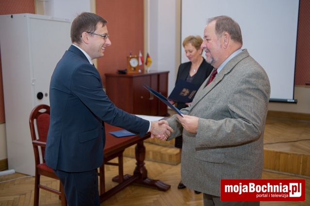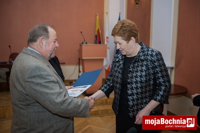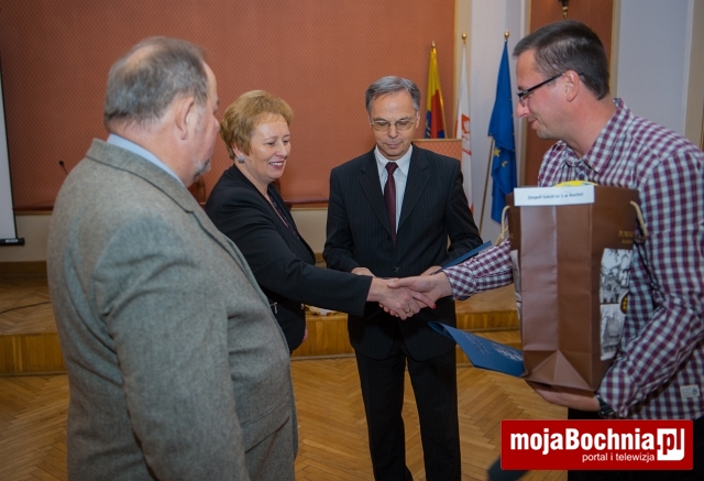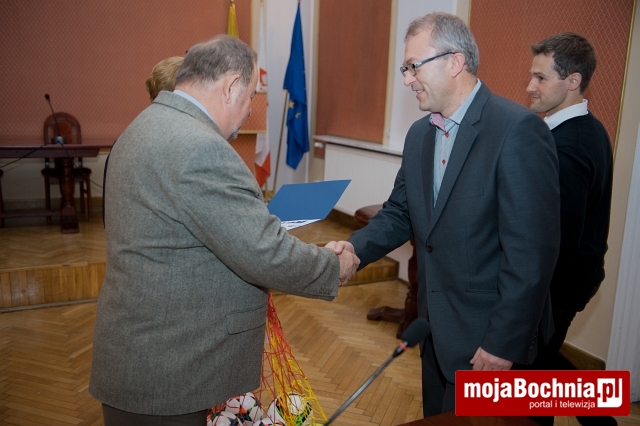 Podczas spotkania starosta wręczył również pamiątkowe dyplomy dla szkół za współzawodnictwo sportowe szkół ponadgimnazjalnych Powiatu Bocheńskiego za rok szkolny 2014/2015, a najlepsi otrzymali nagrody w postaci sprzętu sportowego:
