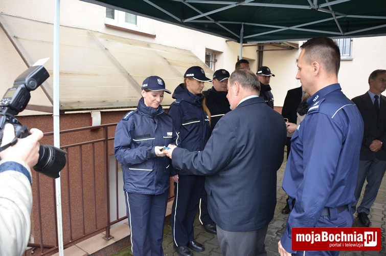 Pierwsza część uroczystości odbyła się w budynku komendy, gdzie młodszy inspektor Mariusz Dymura w obecności przybyłych gości oraz kadry kierowniczej bocheńskiej policji przybliżył stan taboru bocheńskiej policji, a chwilę później podziękował wszystkim osobom, które zaangażowały się i wsparły projekt zakupu radiowozów, wręczając okolicznościowe podziękowania i pamiątki.
