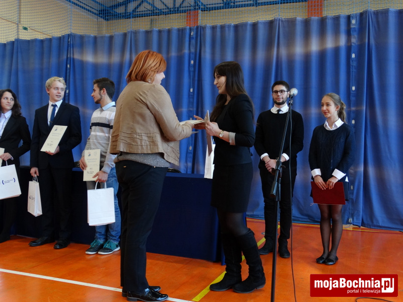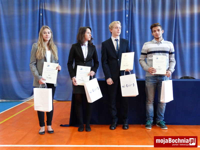 25 listopada w sali sportowej I LO w Bochni odbyło się wręczenie jednorazowych stypendiów zwycięzców Festiwalu biegowego w Krynicy. Nagrodzeni uczniowie to Gabriela Wolak z klasy 2b, Anna Lesiewicz z klasy 1g, Karol Kokoszka