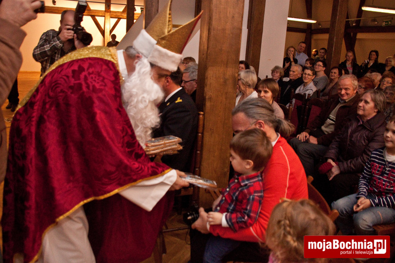 Ostatnim punktem wieczoru była wizyta świętego Mikołaja, który rozdał wszystkim obecnym tradycyjne pierniki z wizerunkiem biskupa Myrry z witraża w Bazylice św. Mikołaja w Bochni.